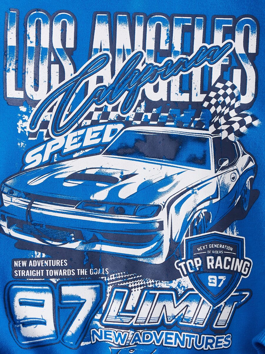 SHEIN Kids HYPEME Tween Girl Car & Letter Graphic Drop Shoulder Pullover