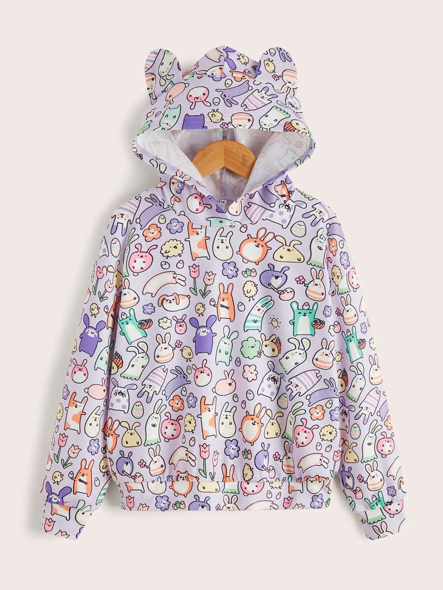 SHEIN Kids EVRYDAY Girls Cartoon Allover Print 3D Ear Design Hoodie