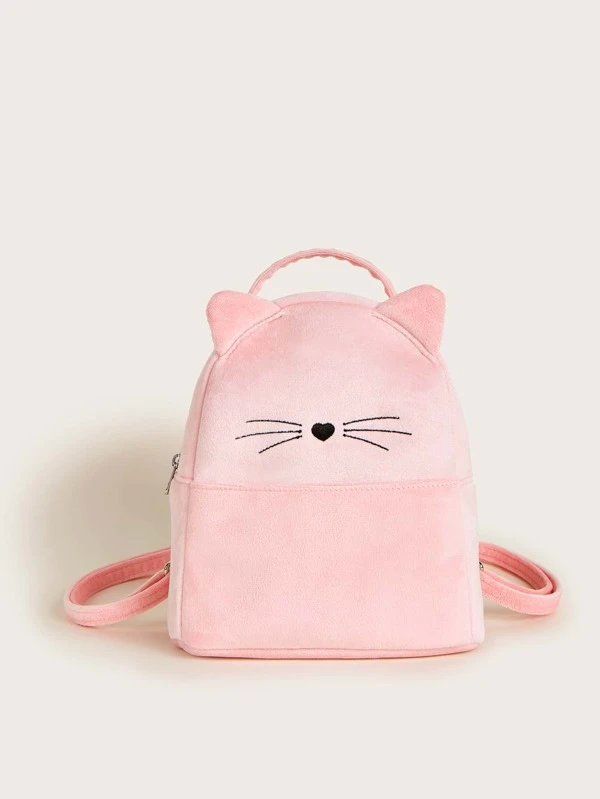 Girls Cartoon Cat Design Fuzzy Novelty Backpack