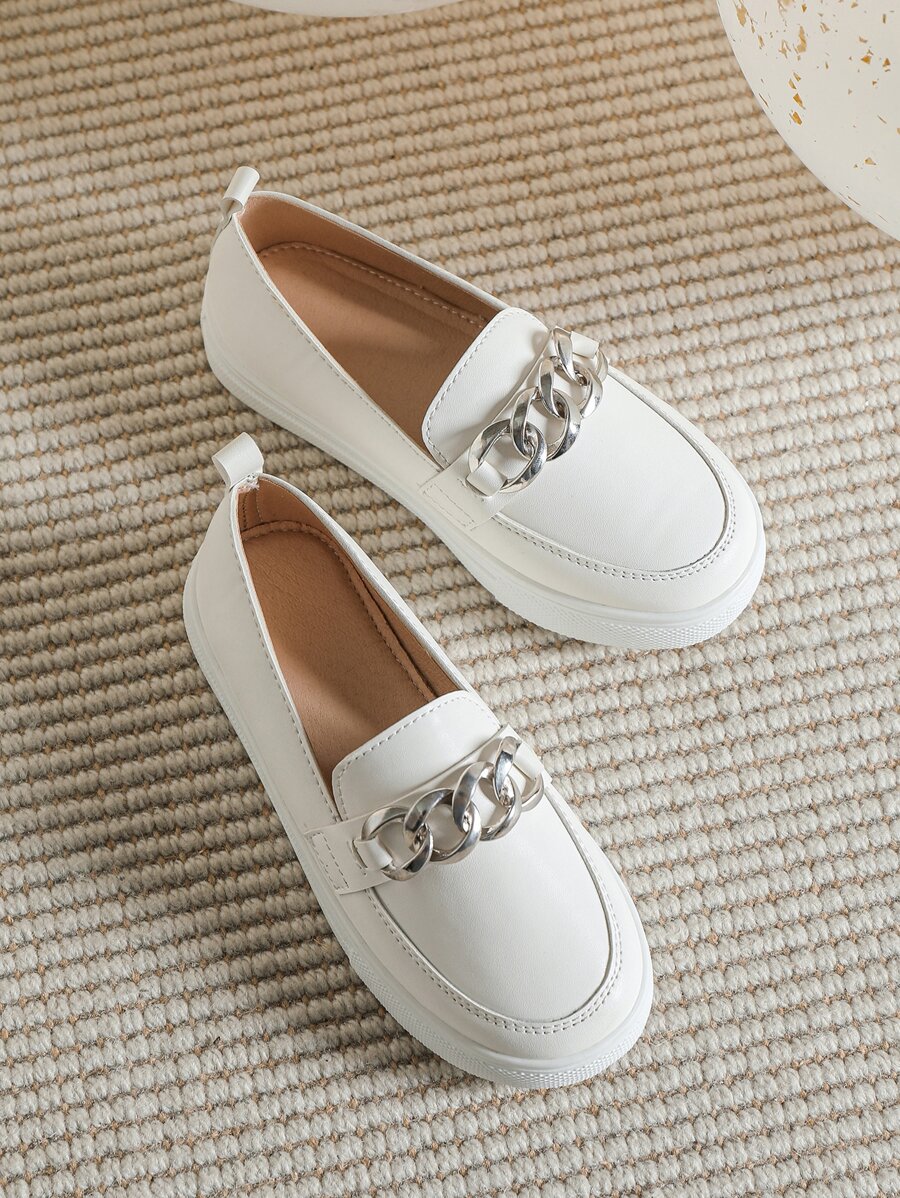 Girls Chain Decor Slip On Sneakers, Sporty White Slip On Shoes