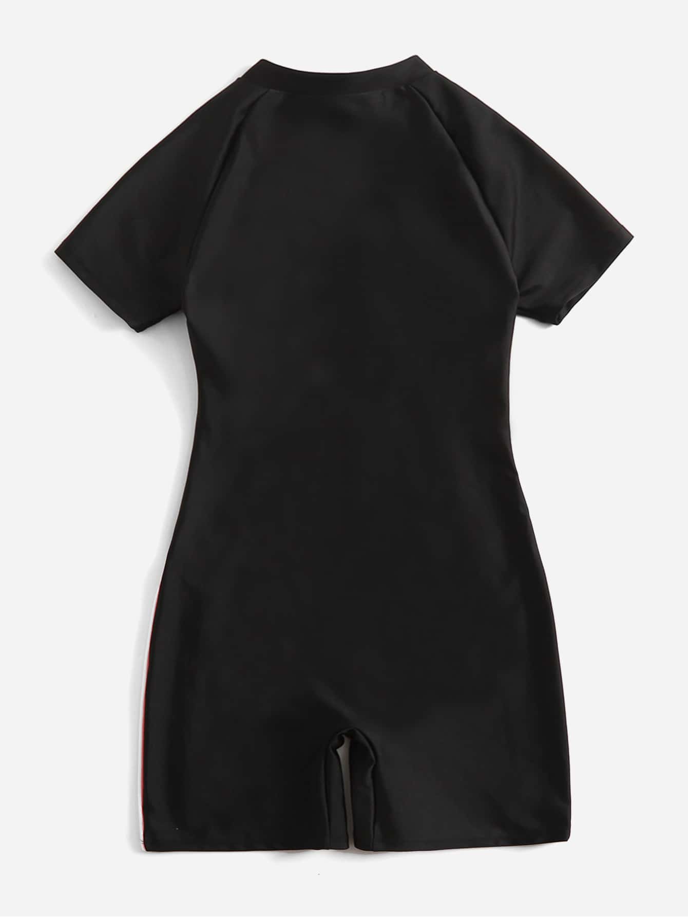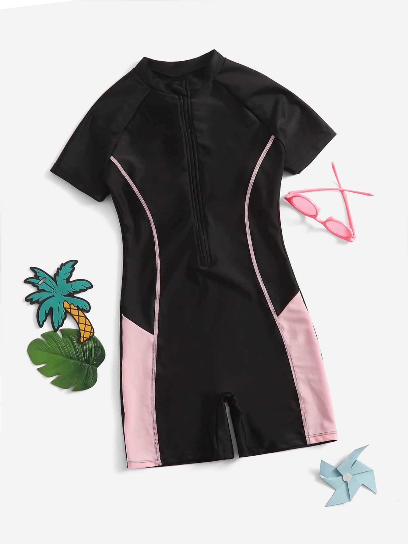 Tween Girl Colorblock Zipper Front One Piece Swimsuit