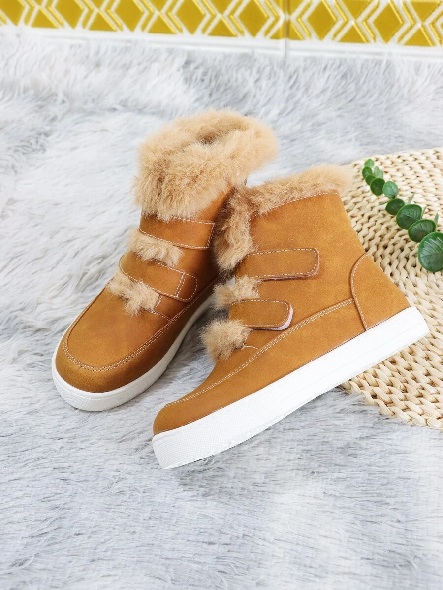 Girls Contrast Fluffy Hook-and-loop Fastener Boots