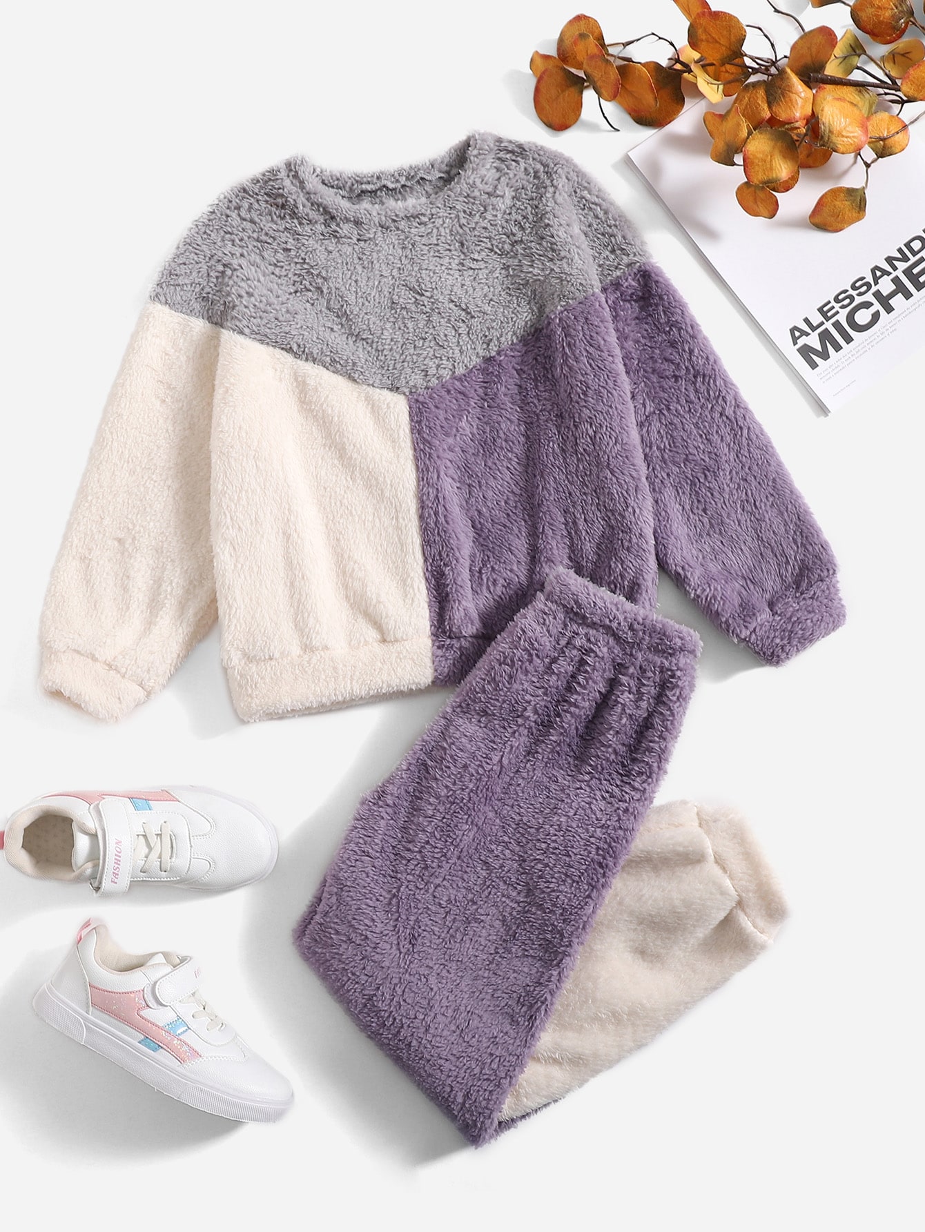 SHEIN Tween Girl Cut And Sew Flannel Pullover & Pants