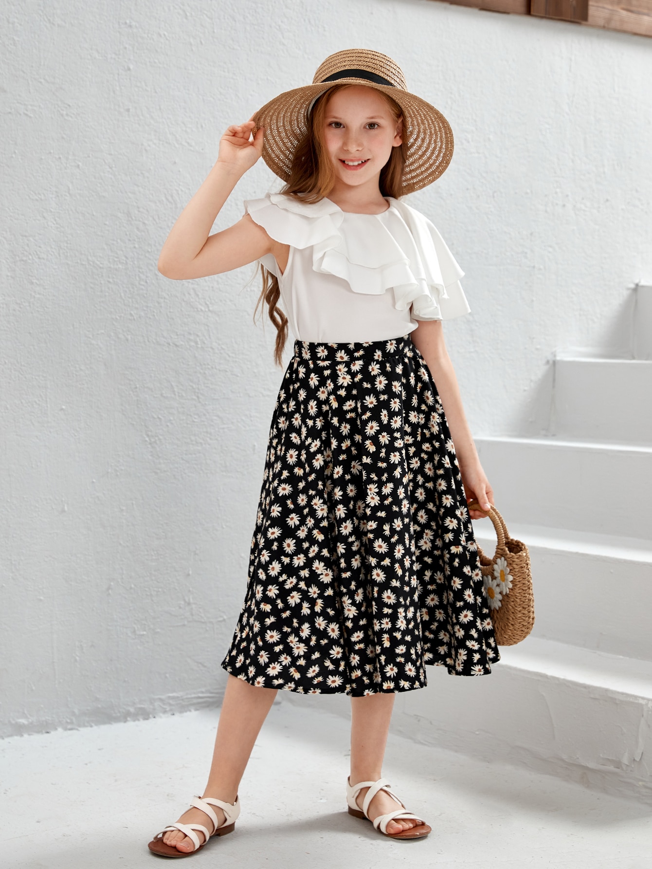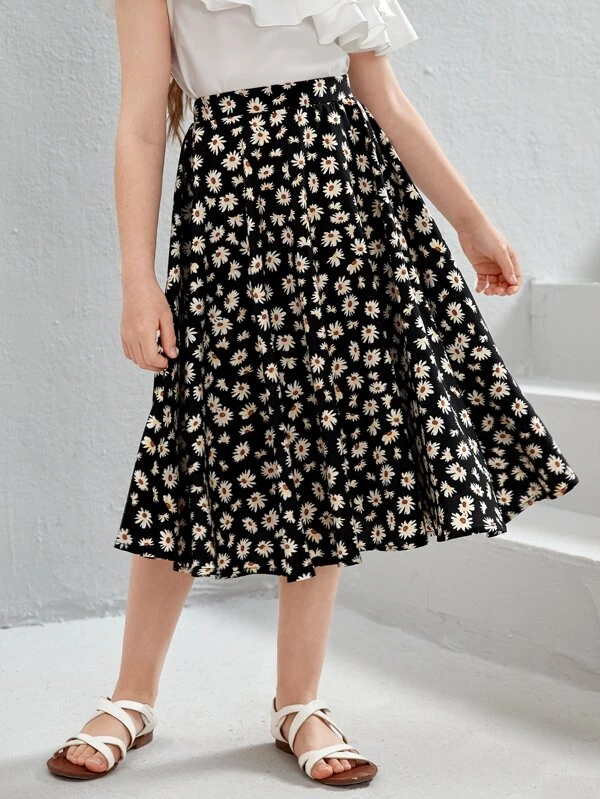 SHEIN Kids SUNSHNE Girls Ditsy Floral Print Skirt