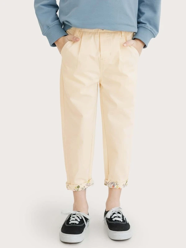 Girls Elastic Waist Floral Print Pants