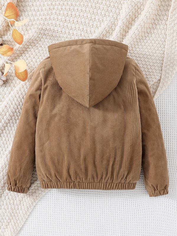Girls Flap Pocket Zip Up Hooded Corduroy Jacket