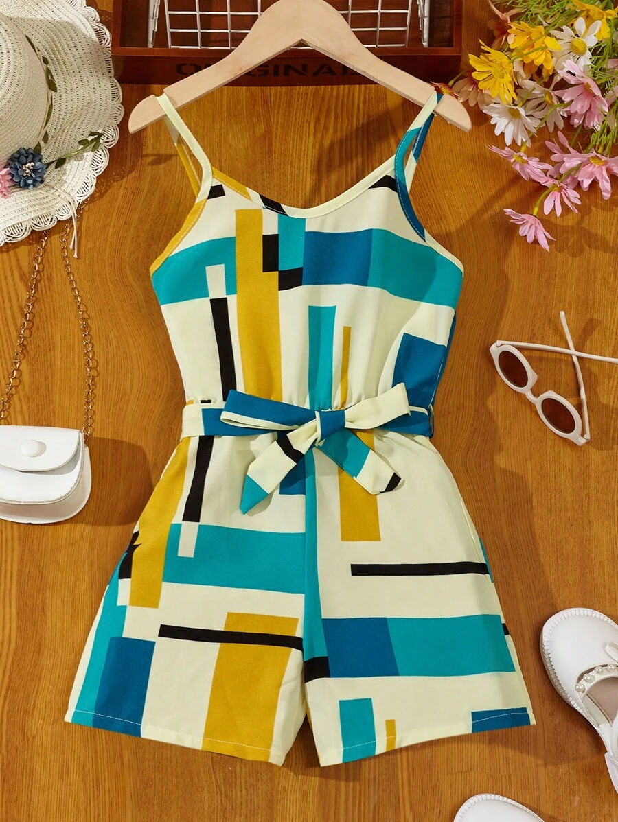 SHEIN Kids SUNSHNE Girls Geo Print Cami Romper
