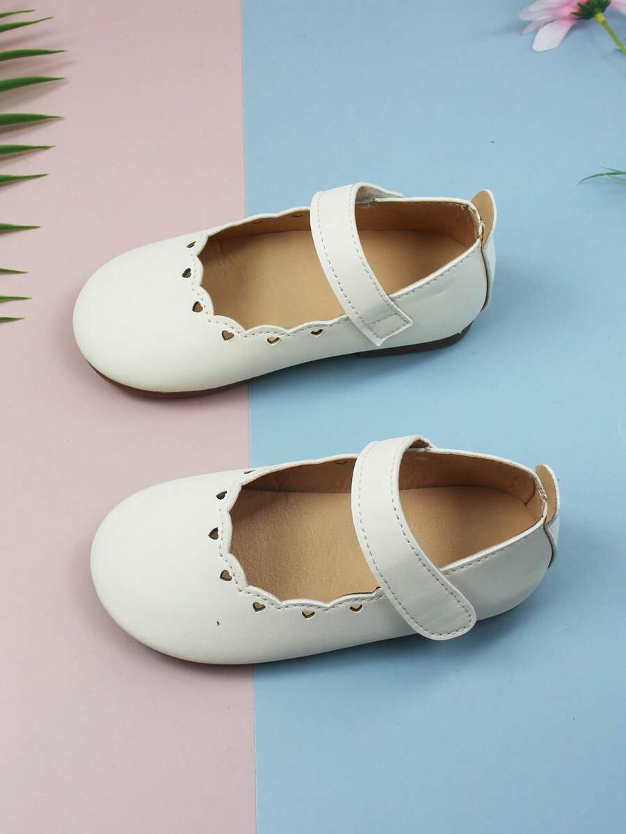 Girls Hollow Out Heart Detail Scallop Trim Minimalist Mary Jane Flats For Outdoor