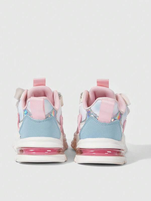 JNSQ Girls Hook-and-loop Fastener Lace Up Design Letter Graphic Chunky Shoes For Spring