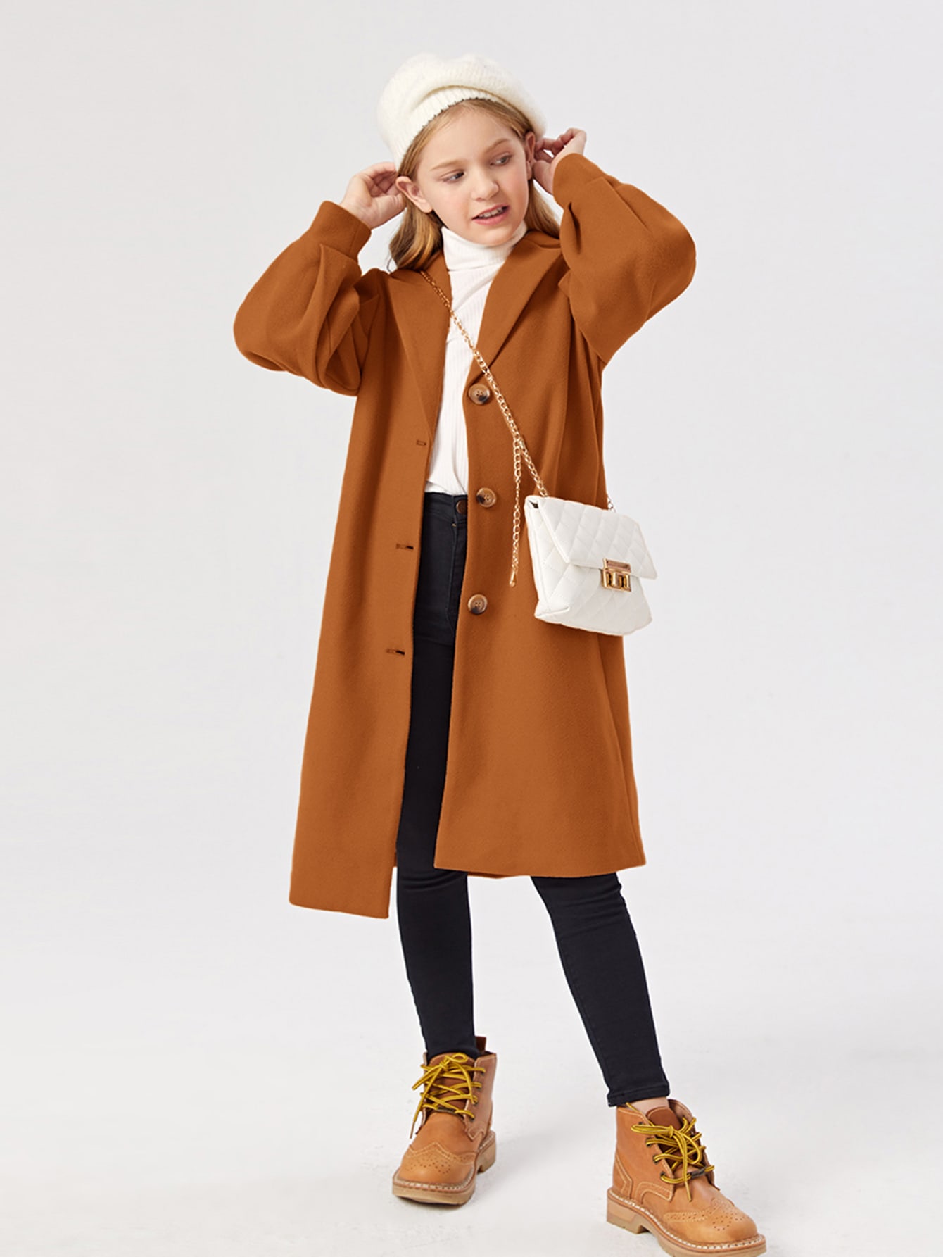 SHEIN Girls Lapel Neck Single Breasted Overcoat