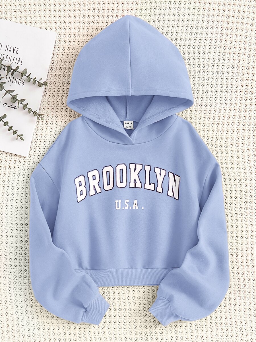 SHEIN Kids EVRYDAY Tween Girl Letter Graphic Thermal Lined Drop Shoulder Hoodie