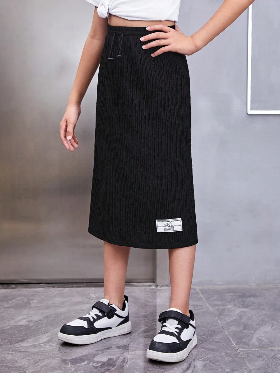 SHEIN Kids EVRYDAY Girls Letter Patched Detail Straight Skirt