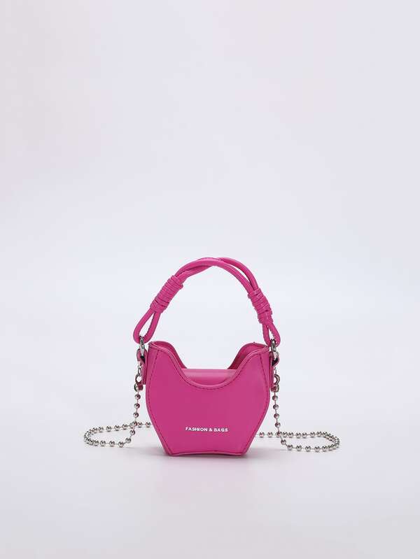 Girls Neon-pink Letter Graphic Bead Decor Novelty Bag