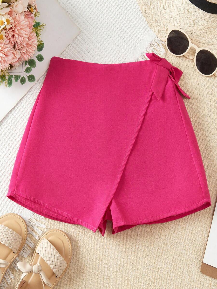 SHEIN Kids EVRYDAY Girls Solid Knot Side Wrap Hem Skort