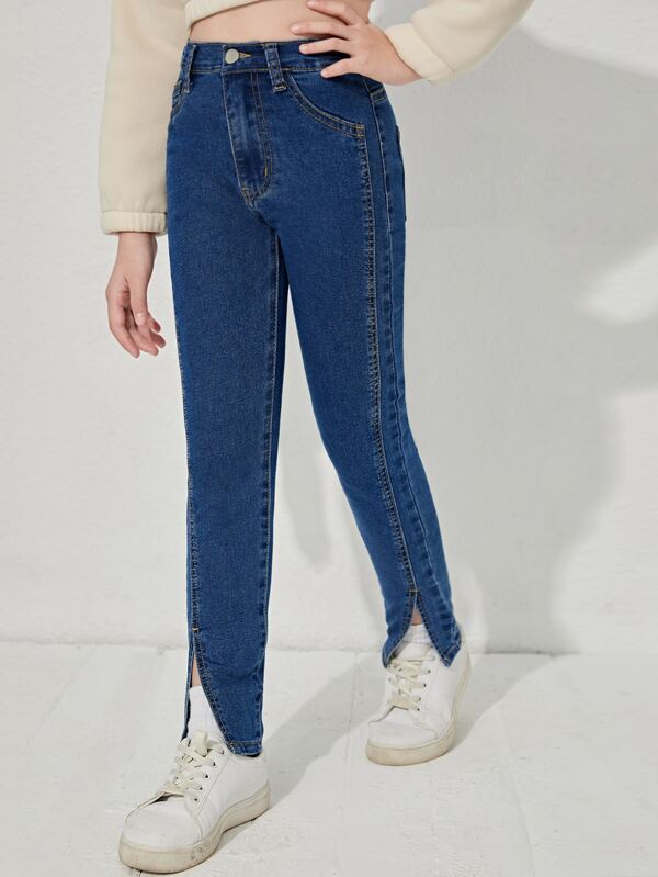 Tween Girl Solid Slant Pocket Jeans