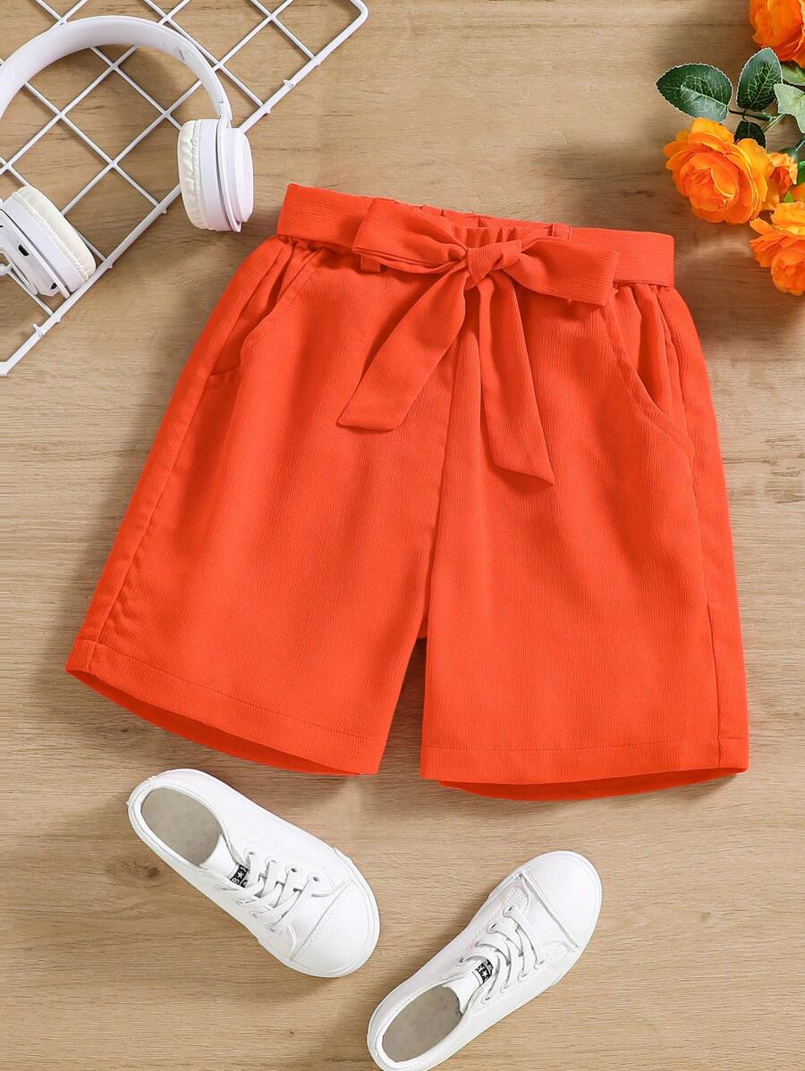 SHEIN Kids EVRYDAY Girls Solid Slant Pocket Straight Leg Shorts