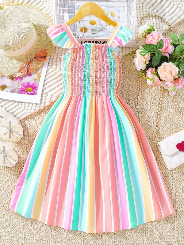 SHEIN Kids SUNSHNE Tween Girl Striped Print Ruffle Trim Dress