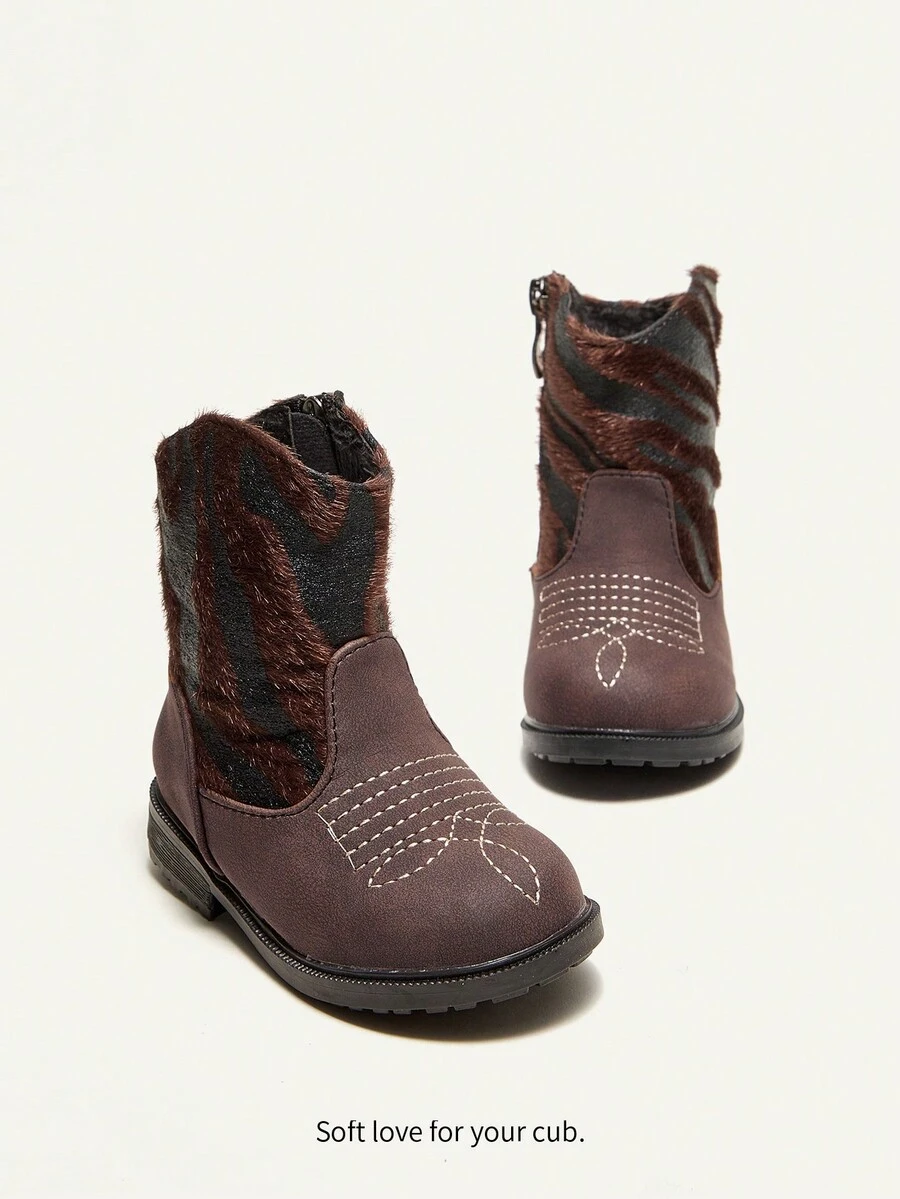 Cozy Cub Girls Vintage Western Boots With Plush Lining