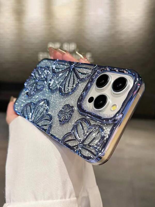 Glitter Electroplated Vintage Personality Hollow Out 3d Oil Painting Floral Design Shockproof Tpu Cell Phone Case Suitable For Iphone