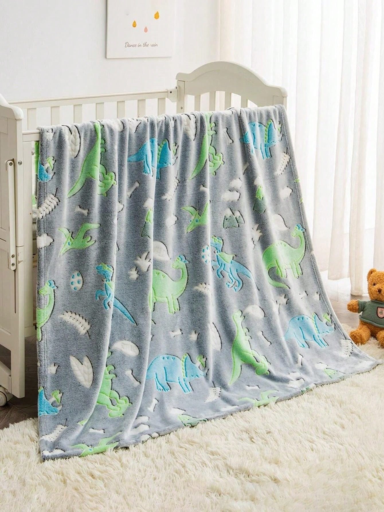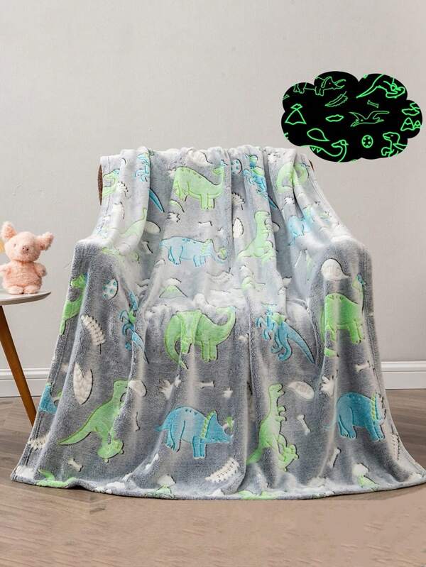 Glow in The Dark Throw Blanket, Cute Dinosaur Blanket for Boys Girls, Soft Cozy Fuzzy Fleece Kids Blanket, Grey Toddler Blanket for Kids Christmas Birthday Gifts for Boys Girls, Sofa blanket