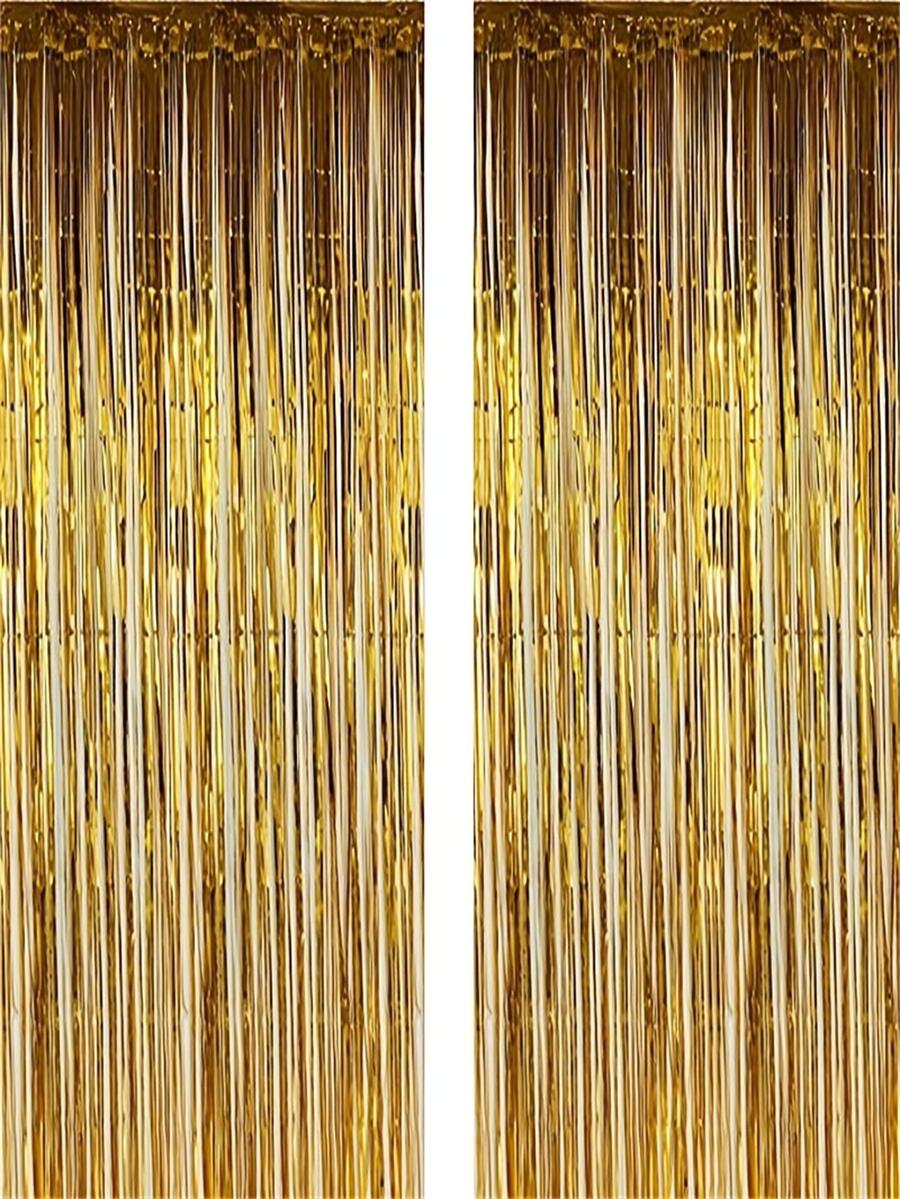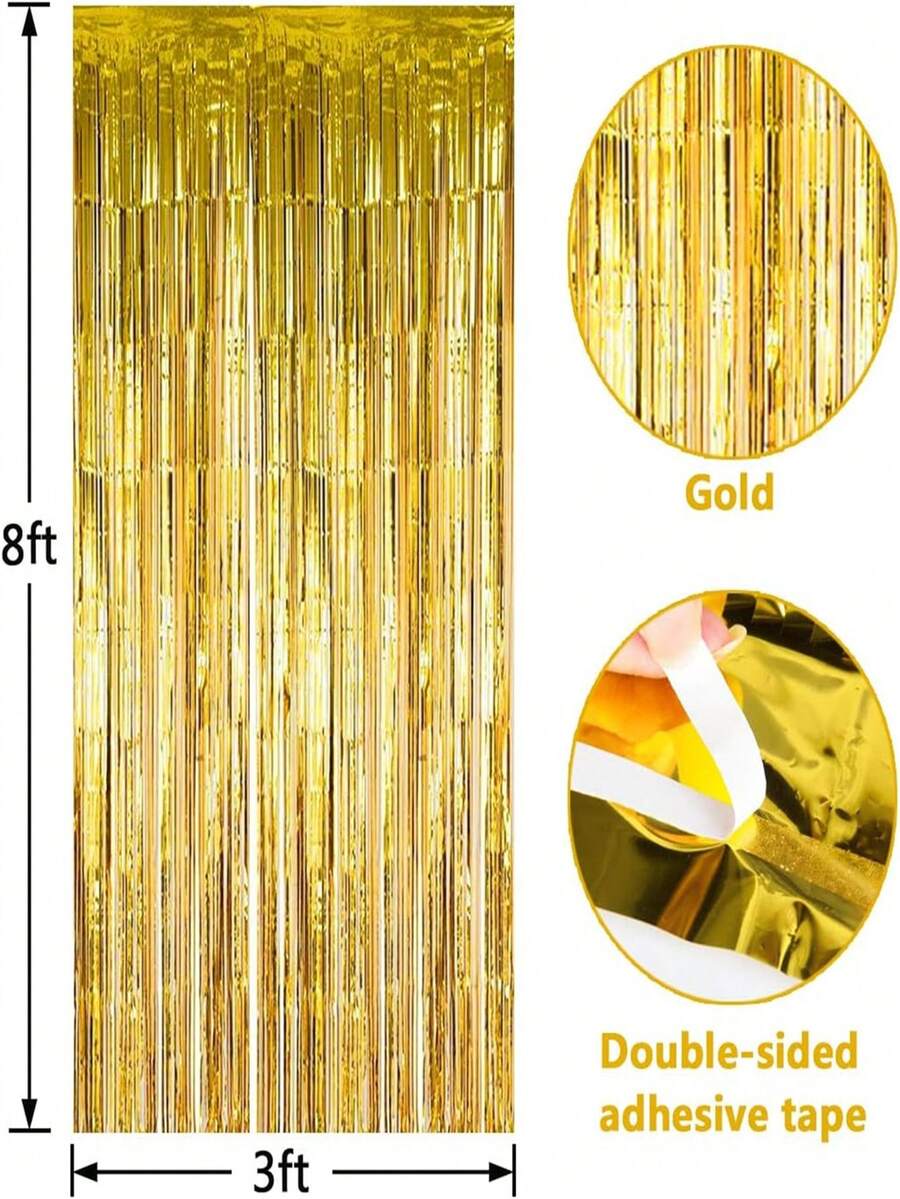 Gold 2-Pack Photo Booth Background Metallic Foil Tassel Curtain Backdrop For Birthday Wedding Party Christmas Dration Wedding, Graduation (Gold) (Blue) (Rose Gold) (Black) (Green) (Red) (Pink)