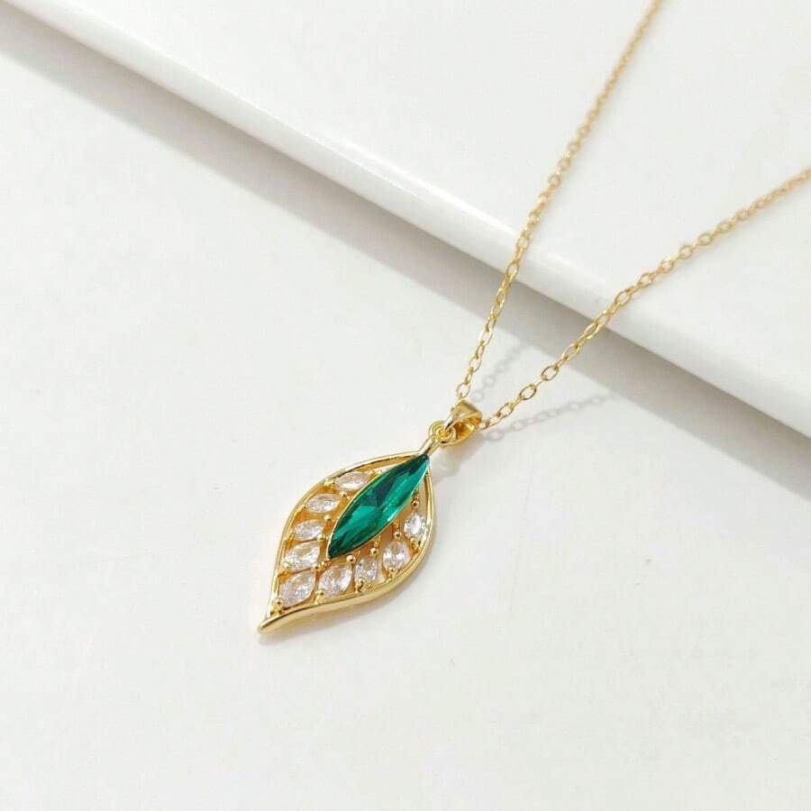 Gold Branch & Jade Leaf Design Green Leaves Pendant Necklace For Women