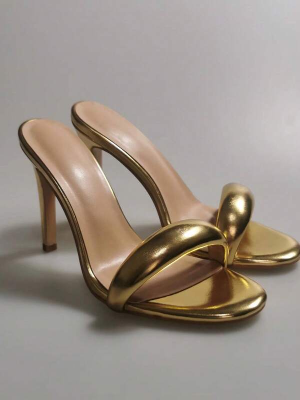 Gold Fashion Catwalk Personality Open Toe Stiletto One-Line Sandals