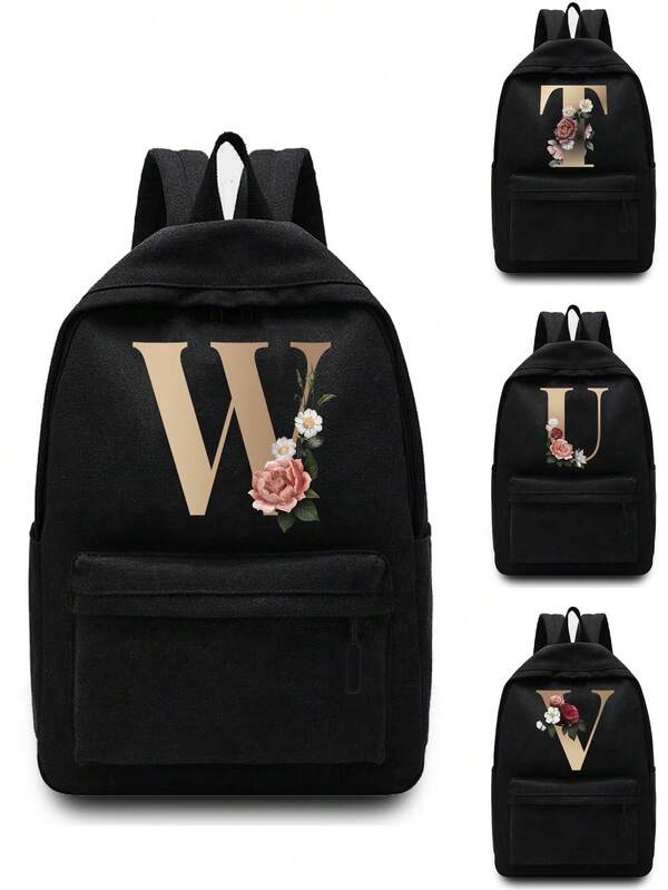 Lightweight,Portable Gold Letter Flower Printing Unisex Shoulder Backpack Outdoor Sport Bag Large Capacity Travel Hiking Rucksack Canvas Bags Casual School Bag Backpacks Laptop Organizer Zipper For Men Women Teenager Student School Backpack For College Students Perfect For College,Business, Work, Commute,Outdoors, Hiking, Travel, Climbing, Stadium, Sports, Outings ,Back To School