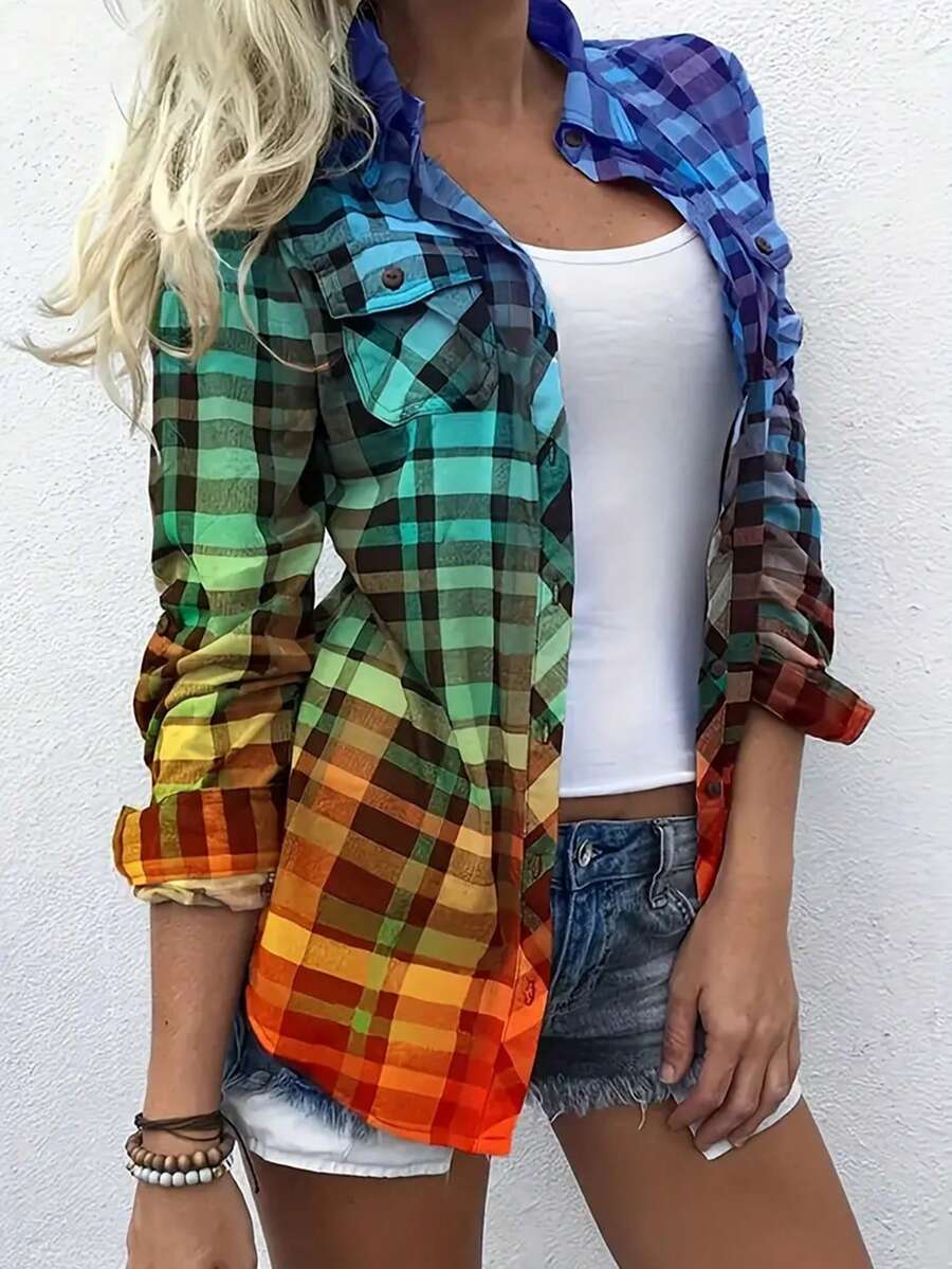 SHEIN LUNE Gradient Plaid Shirt For Women
