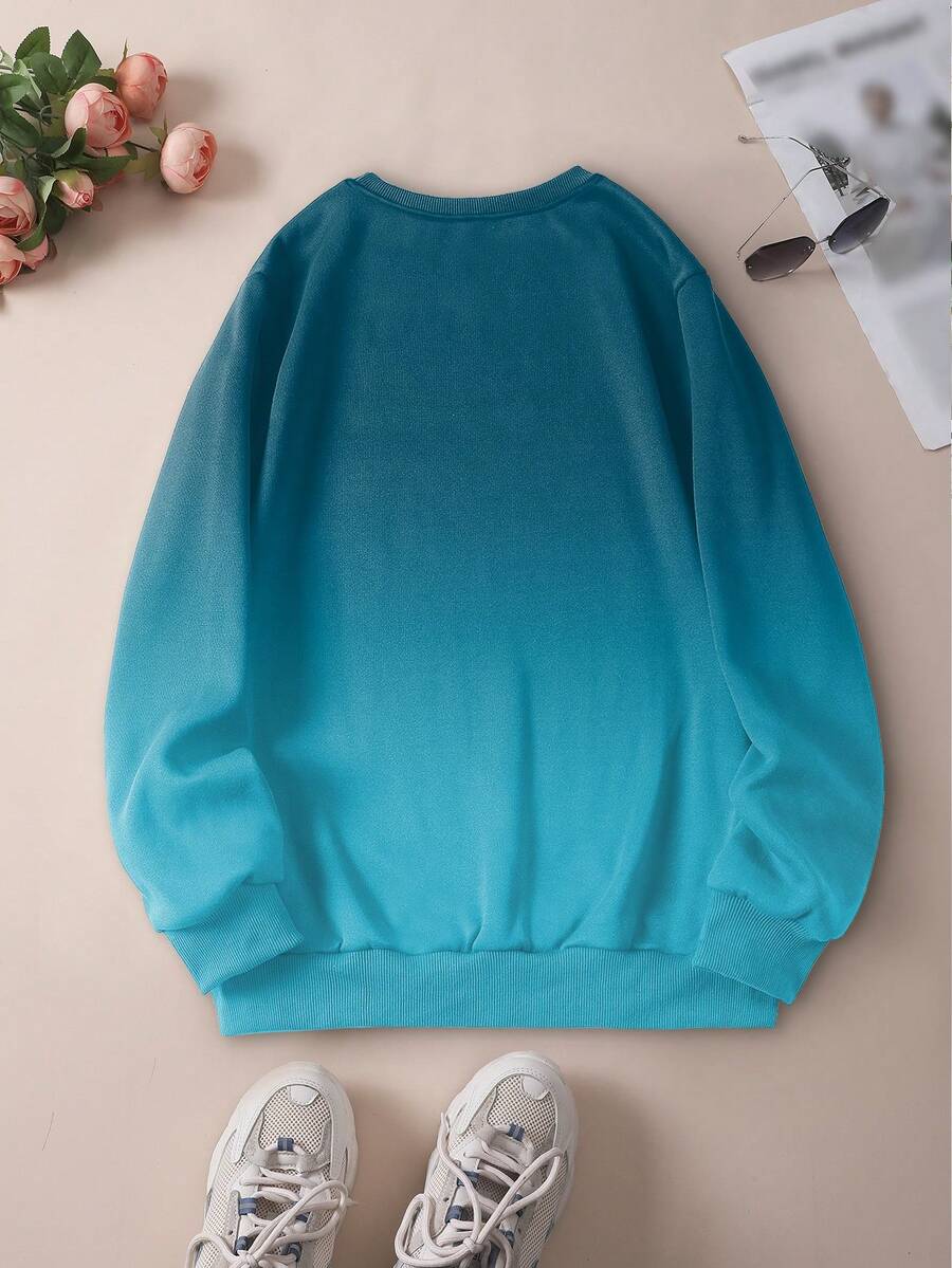 SHEIN LUNE Gradient Round Neck Long Sleeve Sweatshirt For Women