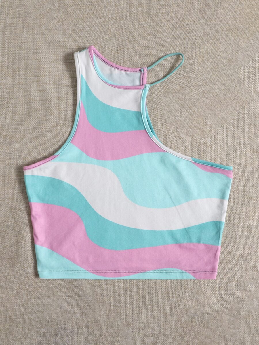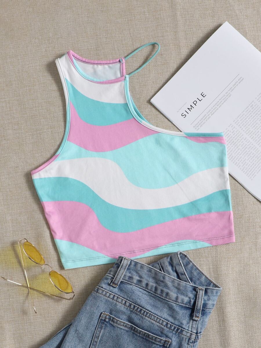 SHEIN Qutie Graphic Print Asymmetrical Neck Crop Top
