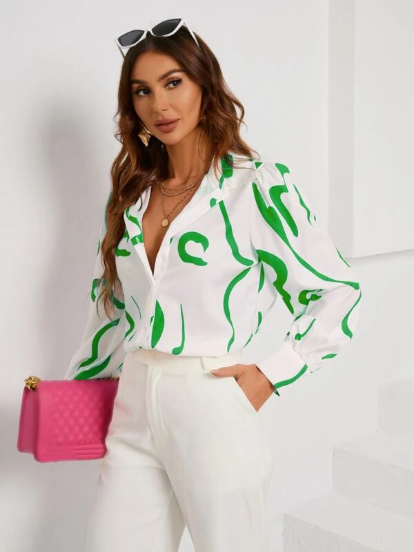 SHEIN BIZwear Graphic Print Button Front Shirt Workwear