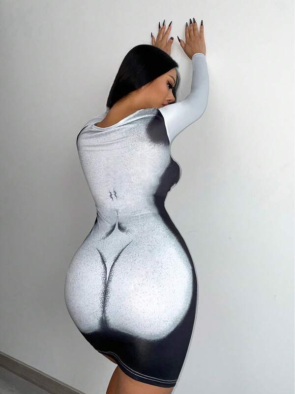 SHEIN SXY Graphic Print Twist Front Cut Out Bodycon Dress