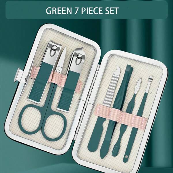 Green 7 Pcs-Nail Clipper Set Portable For Men And Women Ear Digging Nail Clippers For Men And Women Household Ear Digging Spoon Nail Clippers