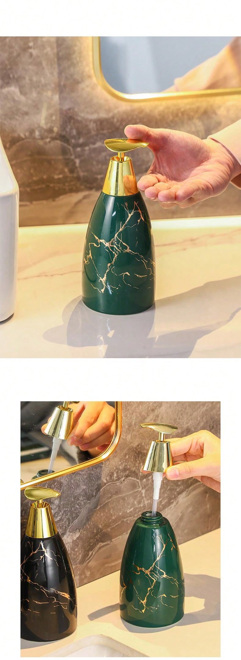 Green Perm Ceramic Hand Sanitizer Bottle Press Bottle Empty Bottle Shampoo Bottle Shower Gel Bottle Light Luxury