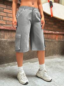SHEIN EZwear Grey Baggy Low Rise Cargo Shorts