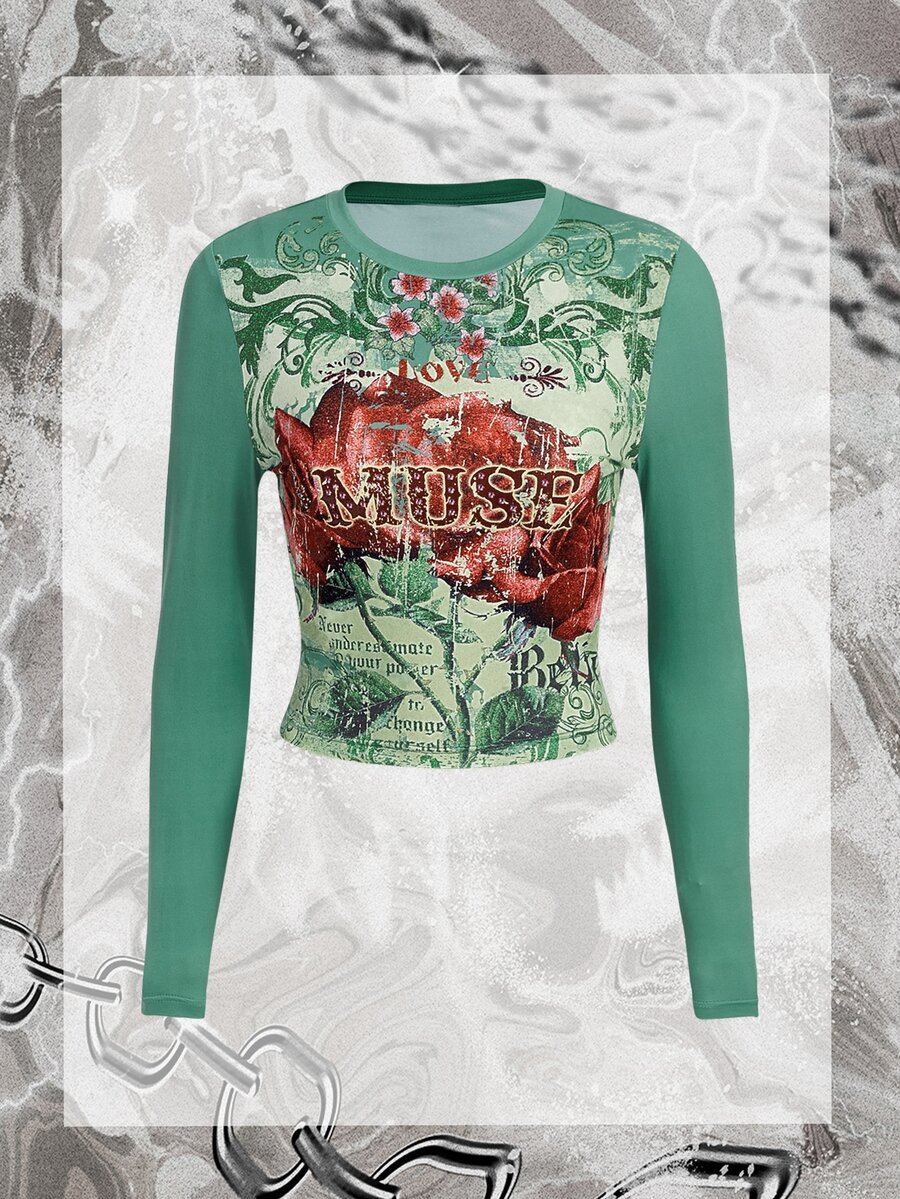 ROMWE PUNK Grunge Floral & Slogan Graphic Crop Tee