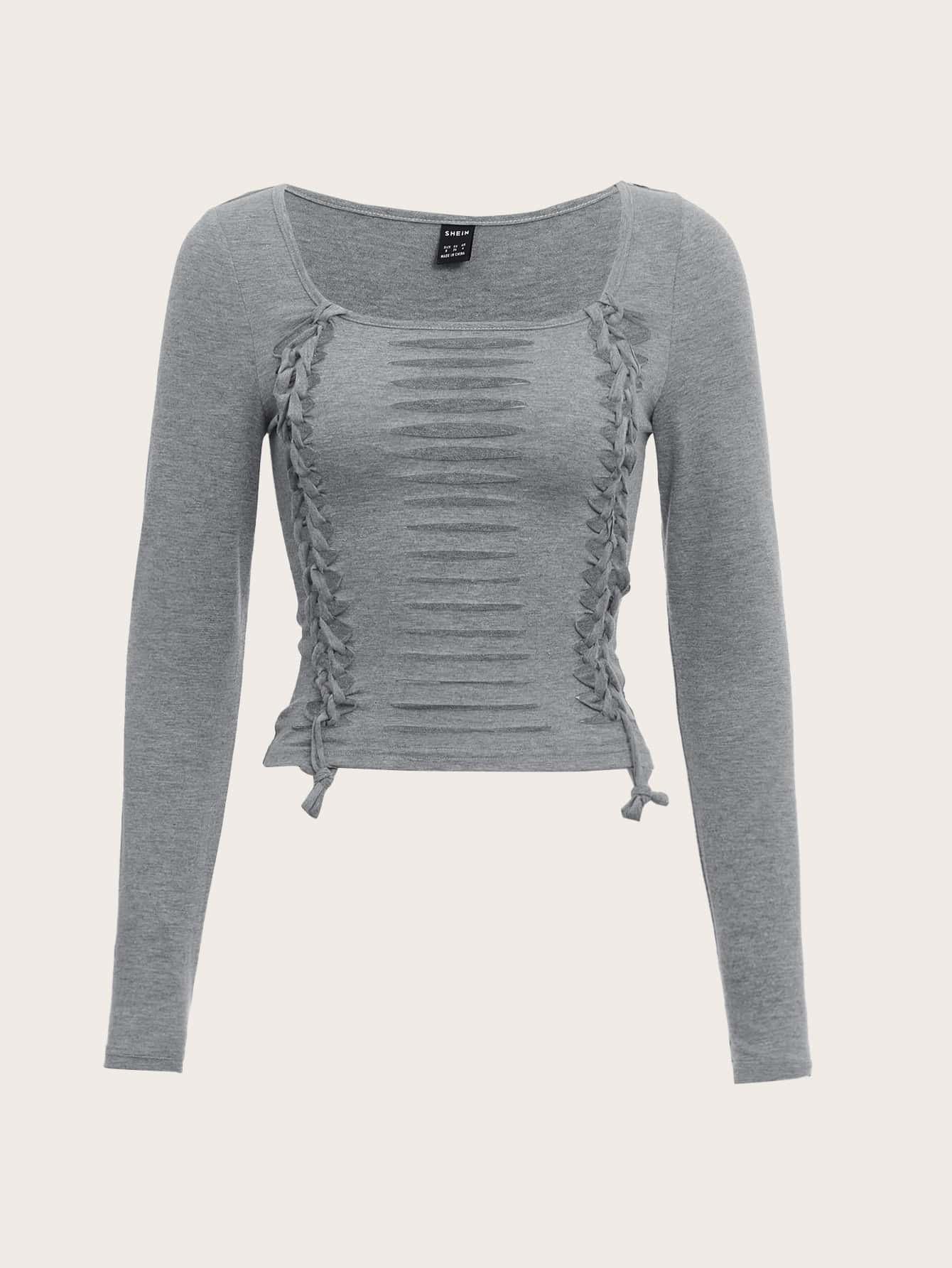 SHEIN ICON Grunge Knot Front Ladder Cut Out Tee