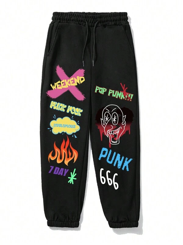 ROMWE Street Life Guys Letter Graphic Drawstring Waist Sweatpants