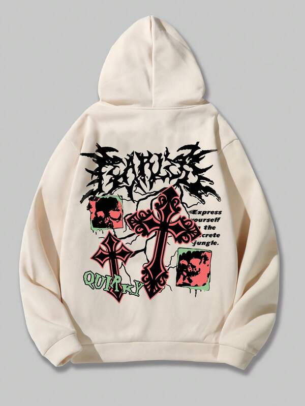 ROMWE Goth Guys Slogan Graphic Drawstring Thermal Lined Hoodie