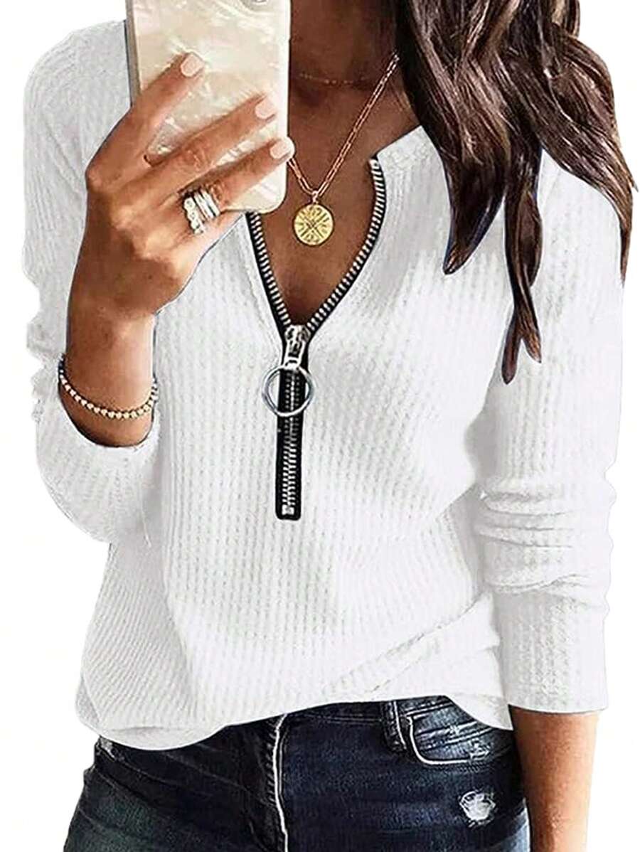 Half Zip Waffle Knit Tee