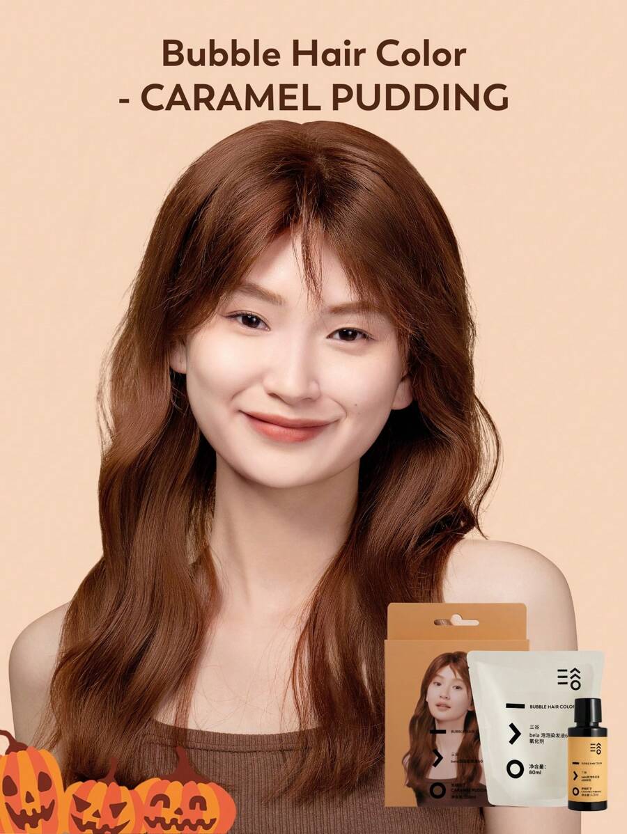 Triptych Of Lune Halloween Hair Coloring Bela Caramel Pudding Home Hair Dye Foam 120ml (refill Pack)