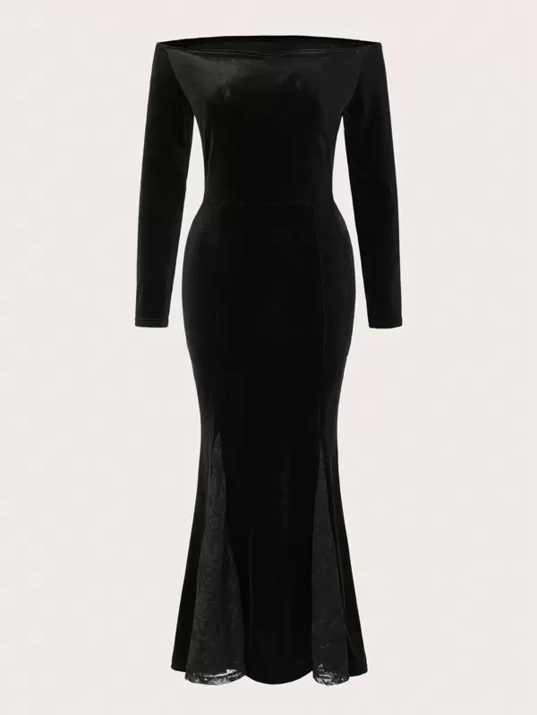 SHEIN ICON Halloween Off Shoulder Lace Insert Velvet Dress