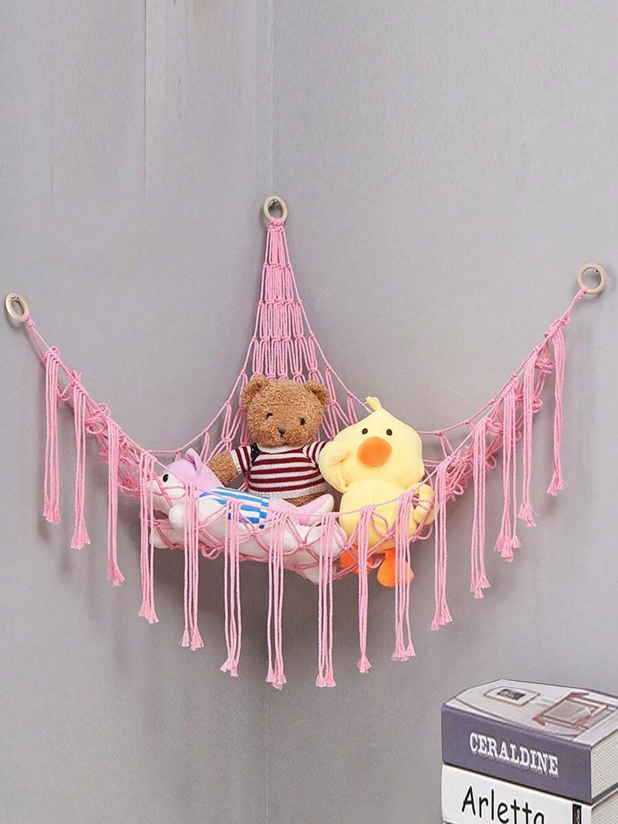 Hand Woven Rope, Wall Hanging Toy Storage Mesh Bag, Wall Decoration, Lace Wall Hanging Toy Storage Rack, Layout Hand Woven Rope Double Shelf Tapestry Bedroom Home Decor,Boho Stuffed Toy Net Hammock, Large 55 Inch Toy Hammock, Macrame Stuff Animal Storage Corner Hanging Net Bag, Mesh Hammock Plush Toy Organizer With Tassel & Hooks For Bedroom, Nursery, Home Organization, Back To School Classroom Supplies