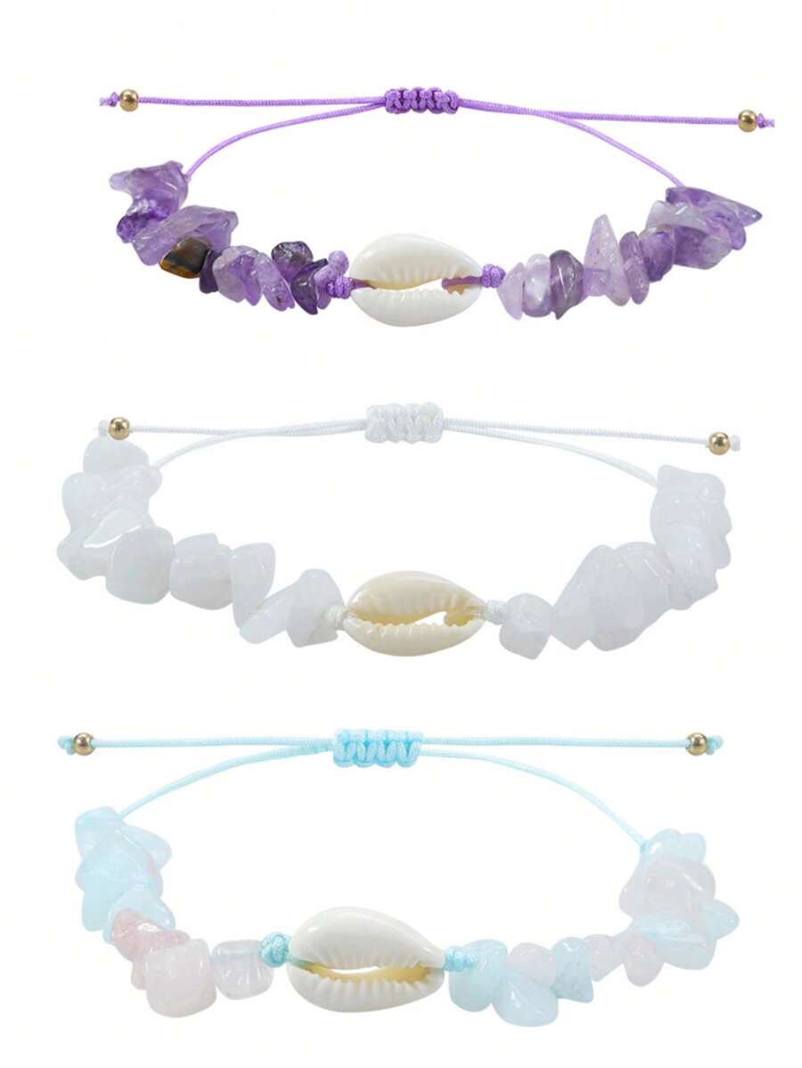 Style Type:Amethyst Bracelet Ankle Chain 3 Pieces White and Blue Set