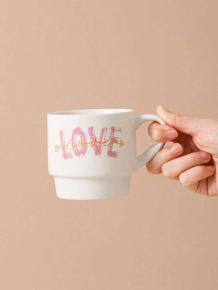 SHEIN Basic living Handcrafted Ceramic Mug,Ceramic White Coffee Mug ,Designed With Love, Suitable For Drinks,Juice, Tea,Coffee, Perfect Cup WIth Handle(1Pc)