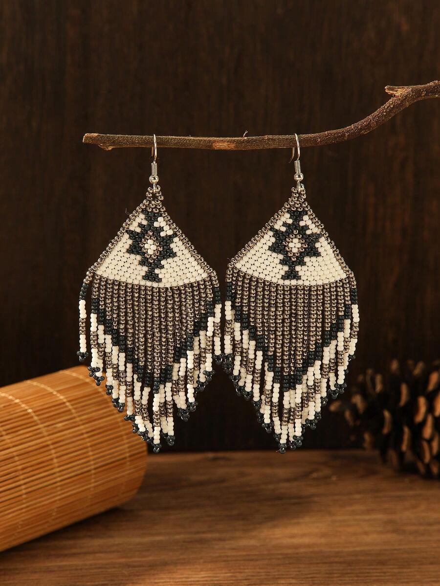 Handmade Bohemian Style Cool Black Tassel Earrings With Beaded Details
