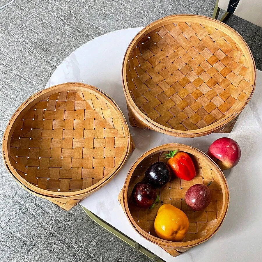 Handmade Woven Wood Chip Storage Basket, Open Storage Bin Fruits & Vegetables Basket Bread & Snack Storage Basket Storage Basket For Photography Props, Bathroom Supplies Storage Basket, Outdoor Picnic Basket