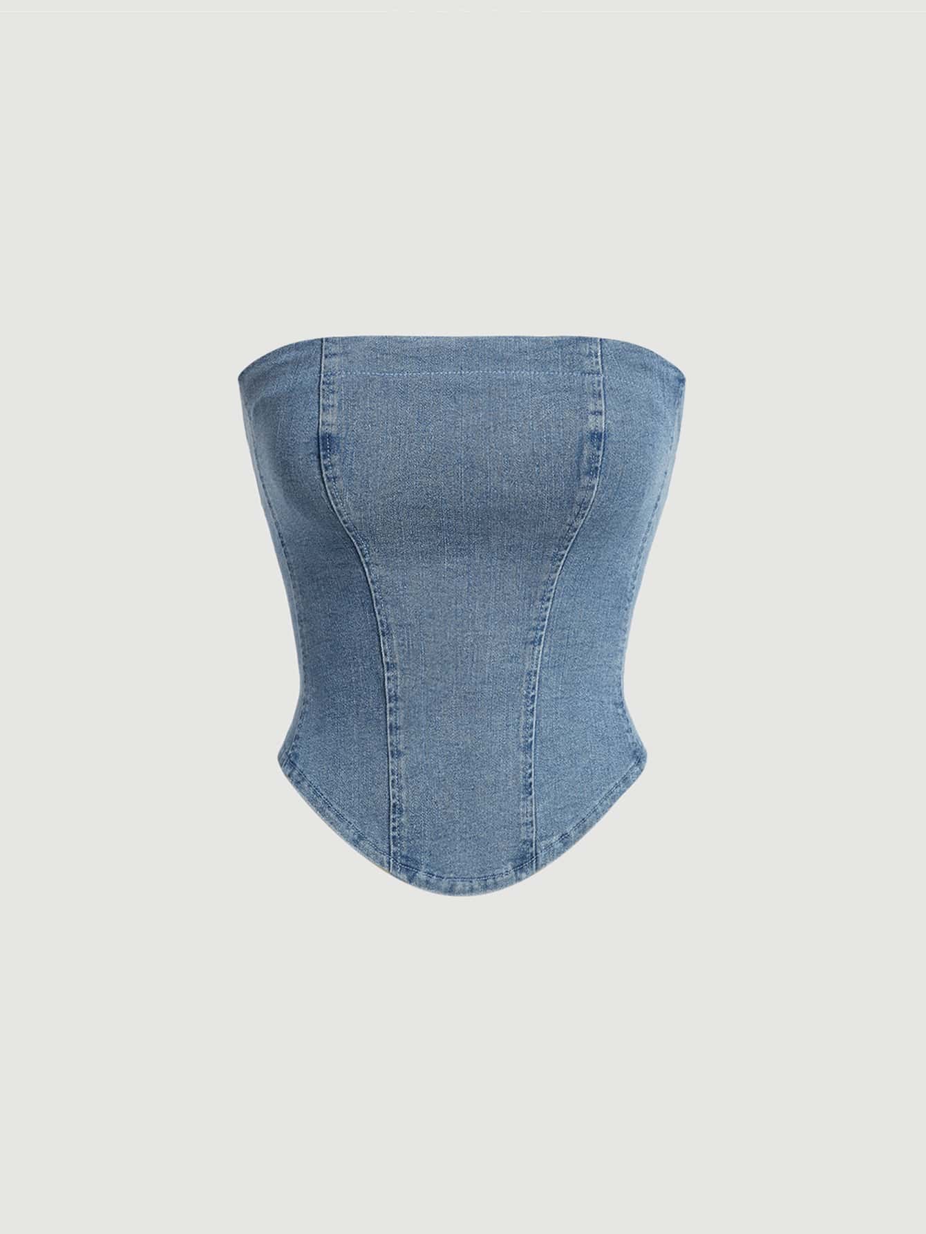 SHEIN MOD Hanky Hem Lace Up Backless Tube Denim Top