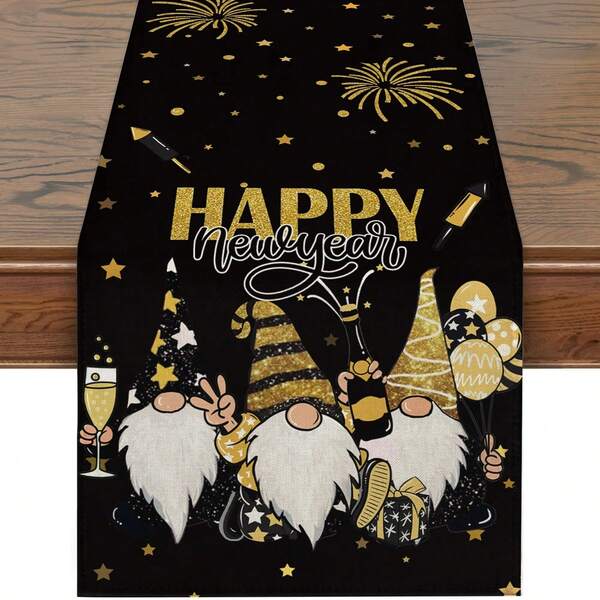 Happy New Year Table Runner, Cheers Firework Clocks Festival Kitchen Dining Table Decoration For Home Party Decor 13x72 Inch